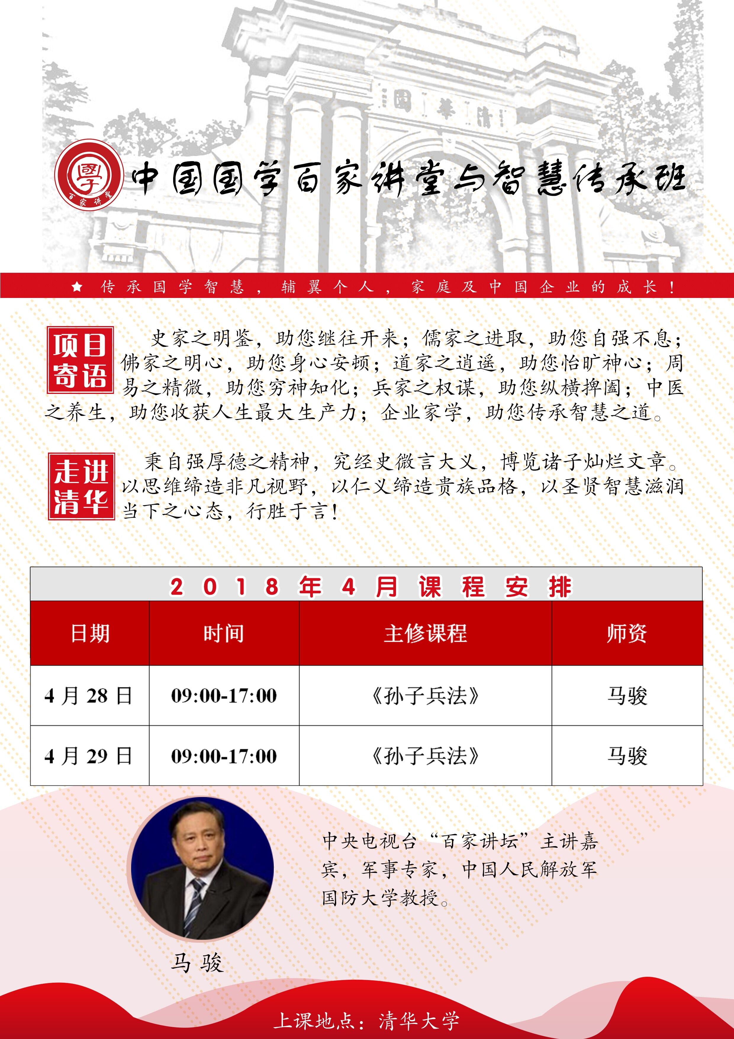 中國國學(xué)百家講堂-2018年4月份清華園上課通知