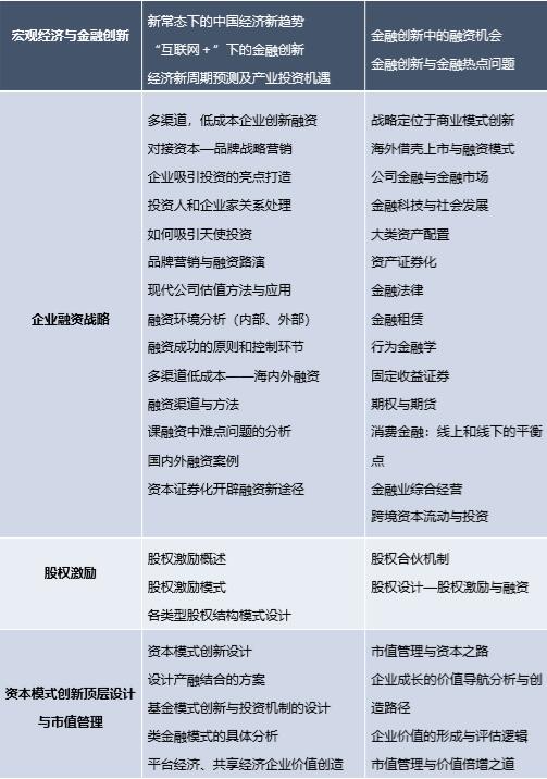 全面系統(tǒng)設(shè)計(jì)課程,融合國(guó)內(nèi)外金融領(lǐng)域最頂級(jí)實(shí)戰(zhàn)精英,為學(xué)員投融資創(chuàng)新實(shí)踐打下堅(jiān)實(shí)基礎(chǔ)。